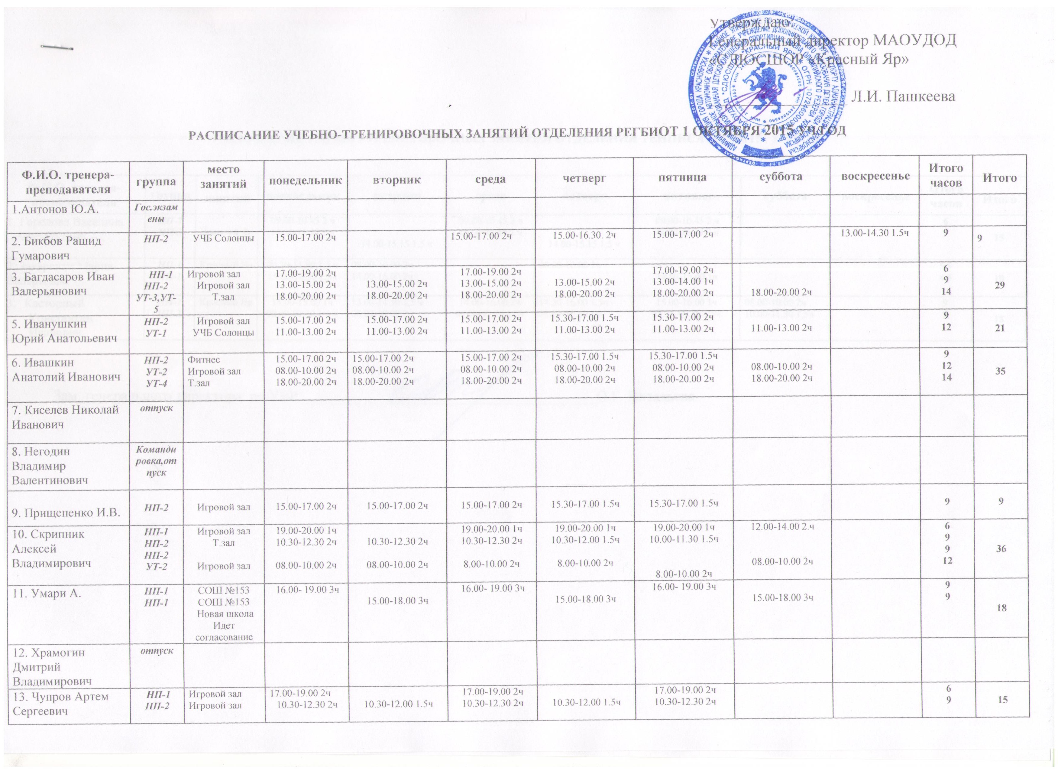 Расписание учебно-тренировочных занятий отделения "Регби" от 01 октября 2015 уч/год (Скан)