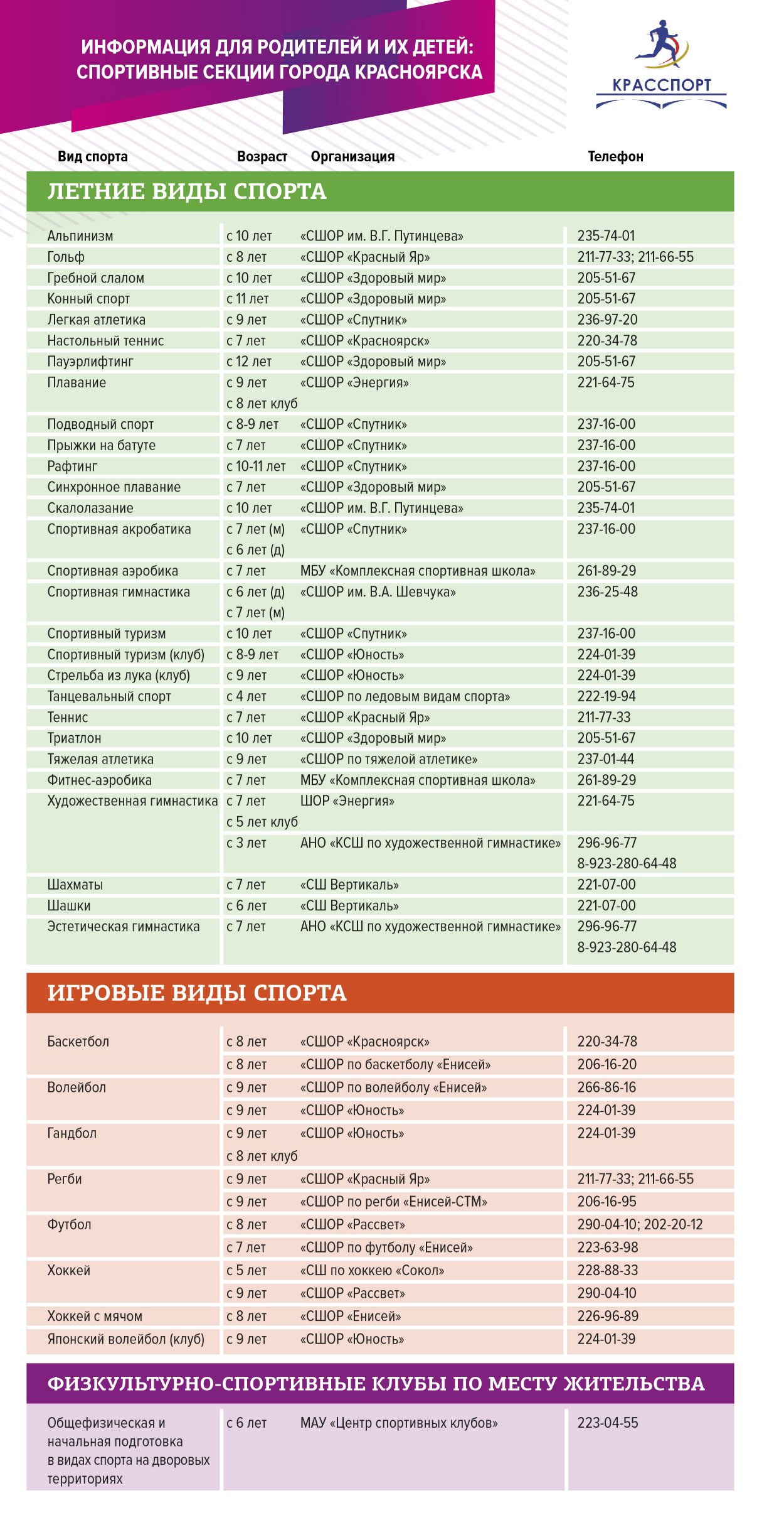 Отдел спортивной подготовки - т. (391) 211-66-55