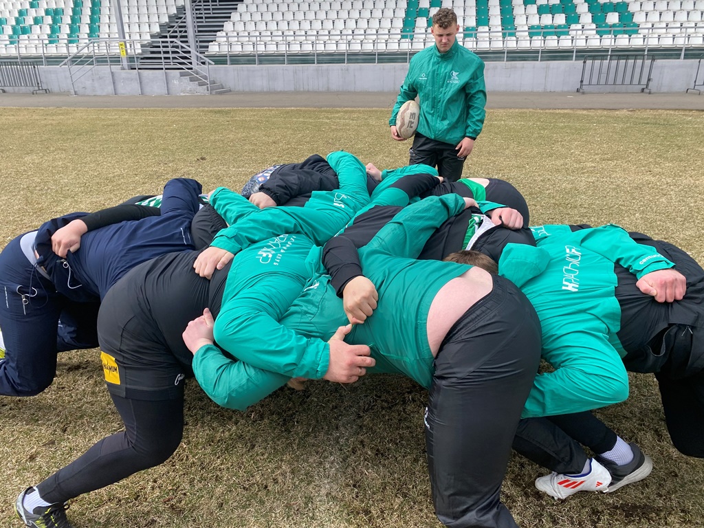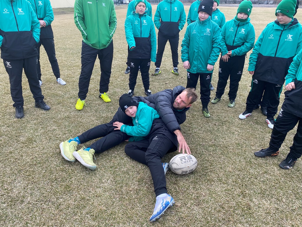Ведушие игроки команды и главный тренер Ульрих Бейерс показывали не только базовые упражнения с мячом, но и заостряли внимание на нюансах игры в регби.