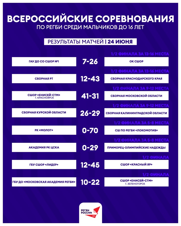 В финале Всероссийского турнира среди мальчиков до 16 лет СШОР «Красный Яр» (тренеры А. Келлер и М. Киселёв) в упорной борьбе проиграли СШОР «Енисей-СТМ» (Зеленогорск) – 12:26. |