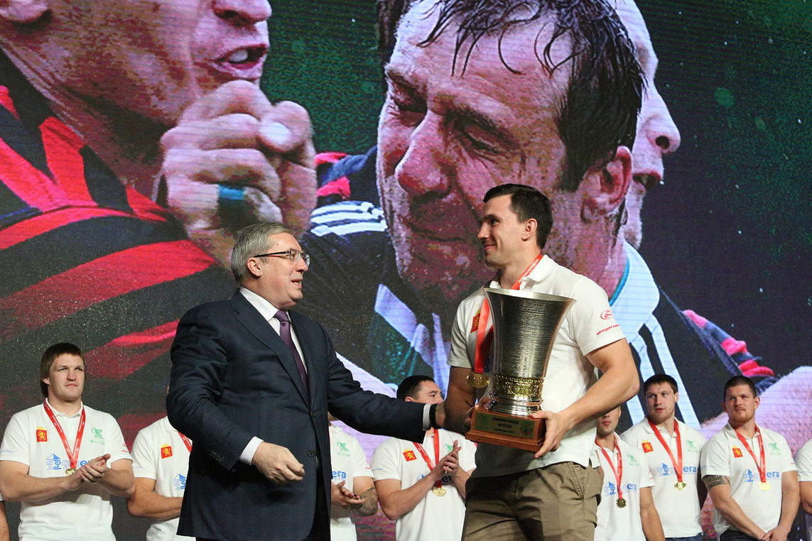 2 ноября в Красноярске в Гранд Холле «Сибирь» награждали «Красный Яр». Золотые медали чемпионов и кубок за победу в чемпионате вручил губернатор Красноярского края Виктор Толоконский. Кубок России – Глава Красноярска Эдхам Акбулатов. Юношей и детскую команду «Красного Яра» награждали вице-президент Федерации регби России Владимир Павлов, президент регбийной Премьер-лиги Георгий Садов и президент Красноярской краевой федерации регби Леонид Ковель. |