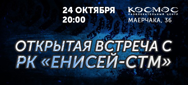 24 октября в 20:00 в развлекательном центре КОСМОС пройдет встреча с регбистами и тренерами "Енисей-СТМ". |