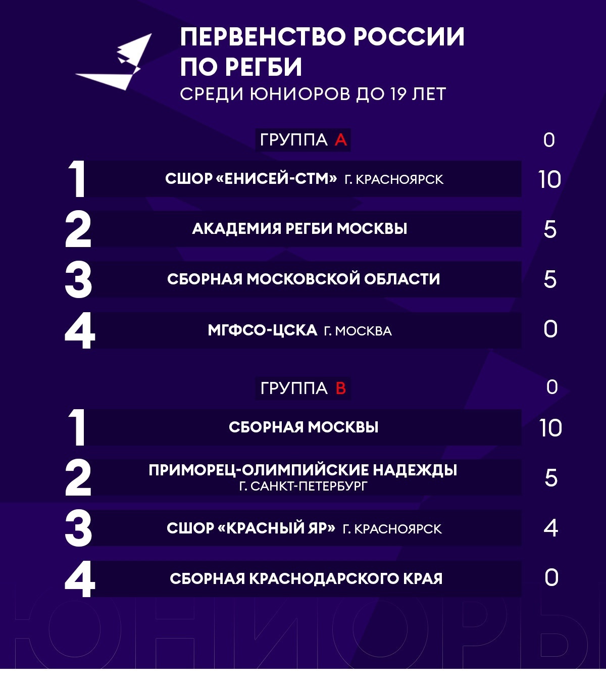 В первом туре регбисты «КЯ» победили сборную Краснодарского края со счетом – 38:12, затем потерпели поражение от Сборной Москвы – 33:12.