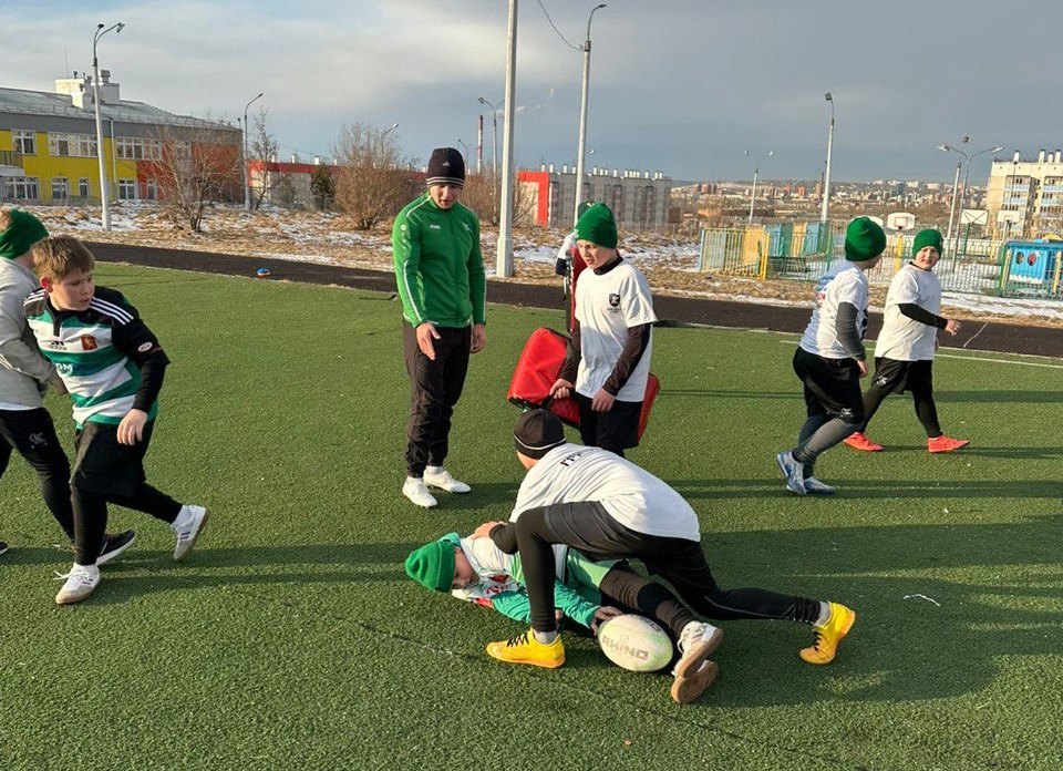 Сегодня в МБОУ СШ №78 регбисты «Красного Яра» провели тренировку для ребят из специализированного спортивного класса 5С.