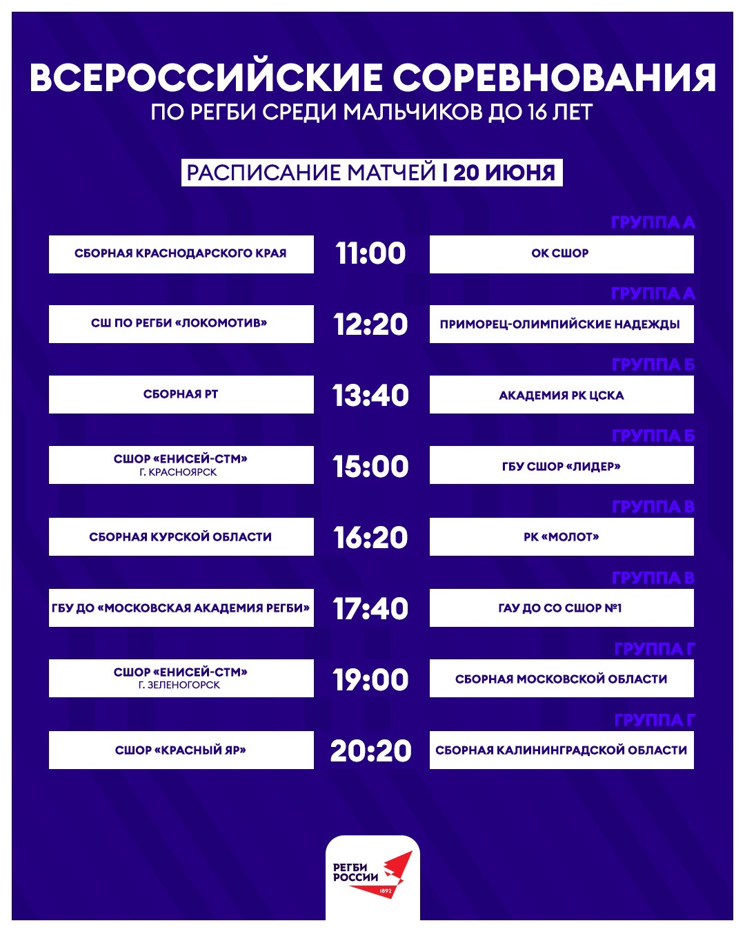 Состав групп и расписание трёх игровых дней: