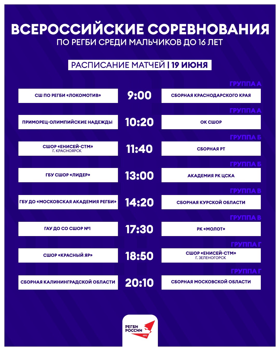 СШОР «Красный Яр- U16» (тренеры М. Н. Киселёв и А. А. Келлер) сыграет в группе с Московской областью, СШОР «Енисей-СТМ» (Зеленогорск) и сборной Калининградской области.